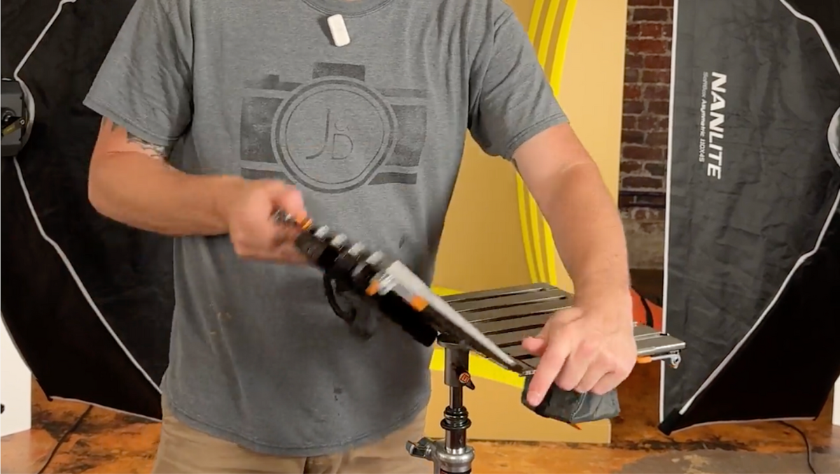 “We always set up our light stands with the long leg facing forward and a sandbag for stability. This protects our gear and keeps everyone safe on set.”