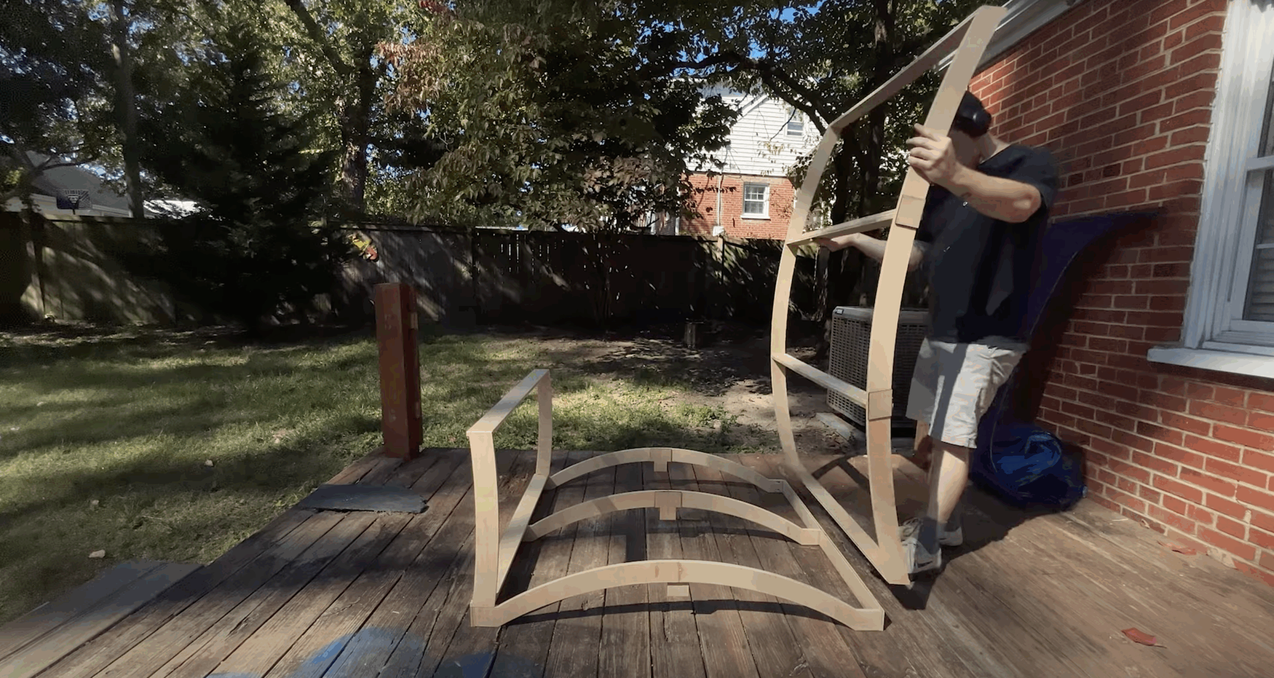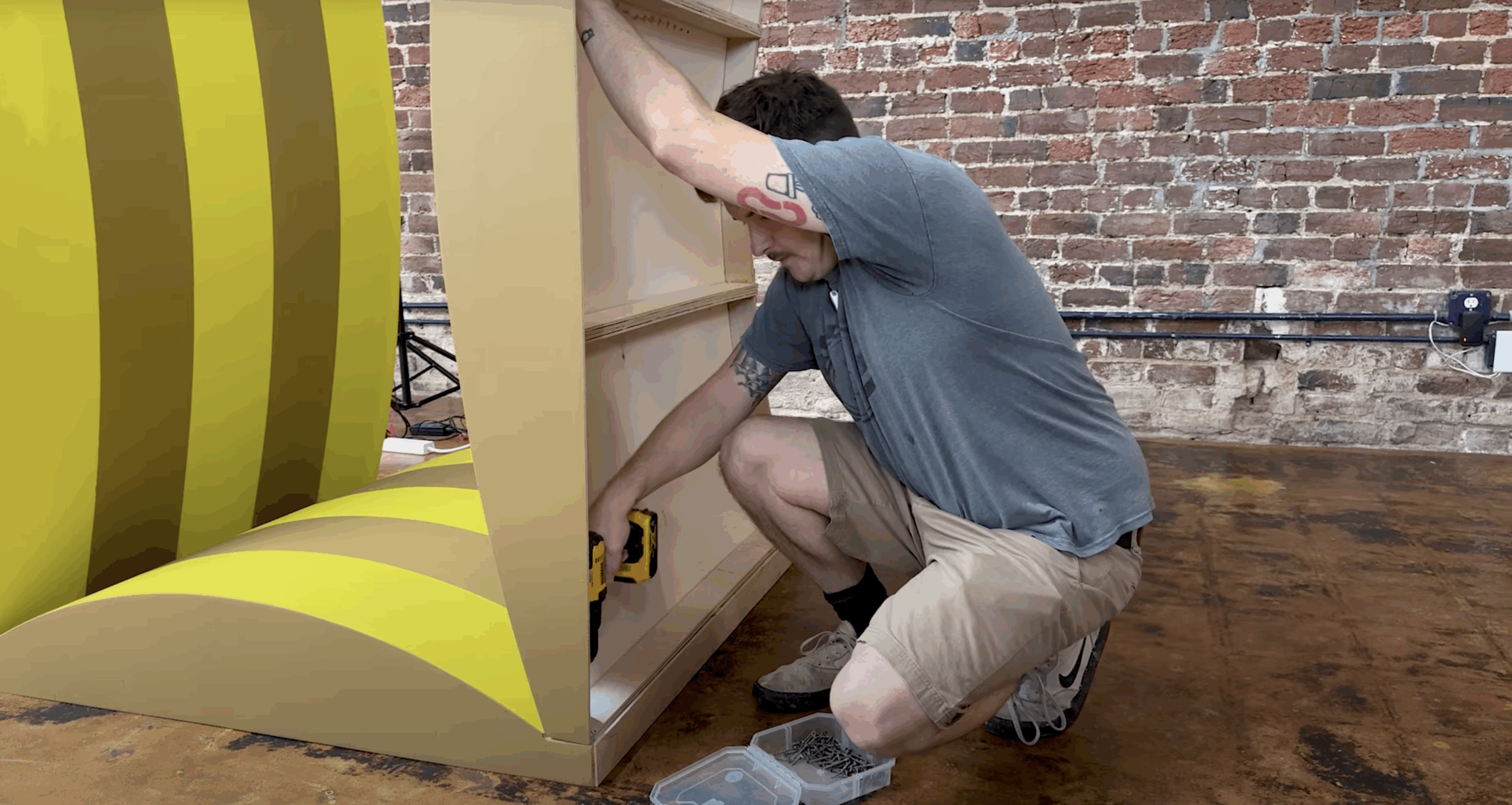 For their latest shoot, they took on one of their boldest builds yet—a bendy DIY plywood set that curved upward to create a sense of movement and distortion.