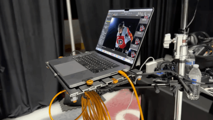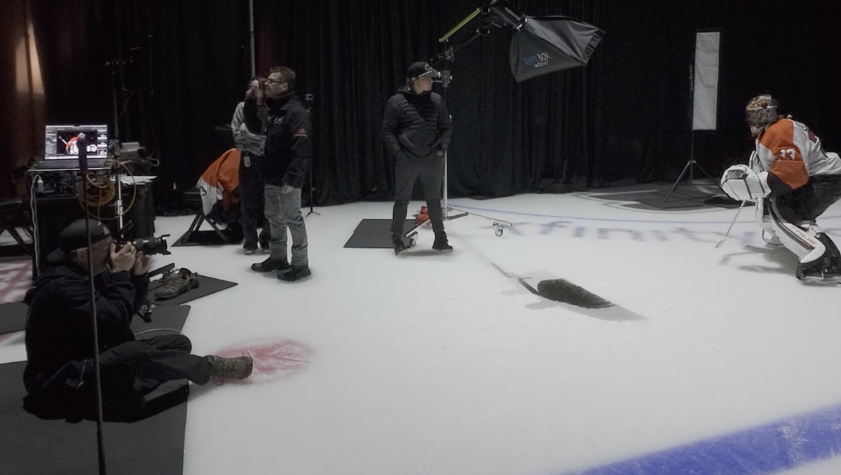 James recently put the AeroTrac to the test on an NHL team shoot for the Philadelphia Flyers— a challenging environment for any tethered setup.