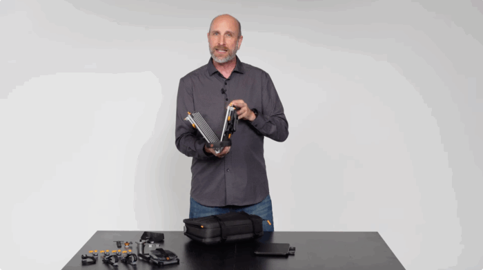 The first thing Mark highlights is the design. AeroTrac folds into a compact, lightweight footprint that fits inside a backpack or its own optional AeroTrac Carrying Case, which can even hold a 13” laptop for true grab-and-go mobility.