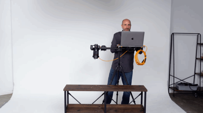 But AeroTrac doesn’t stop at portraits. When the shoot transitions into product work, Mark simply reconfigures the workstation.