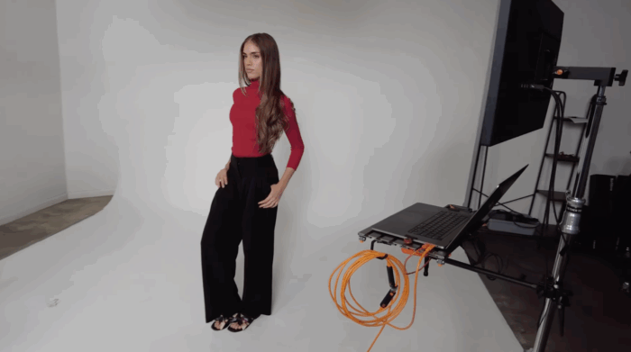 This synchronization matters — not just for Mark’s shooting rhythm, but for how he collaborates. Mark uses the rotating monitor to share images with clients without crowding the capture station, keeping movement on set smooth and uninterrupted.