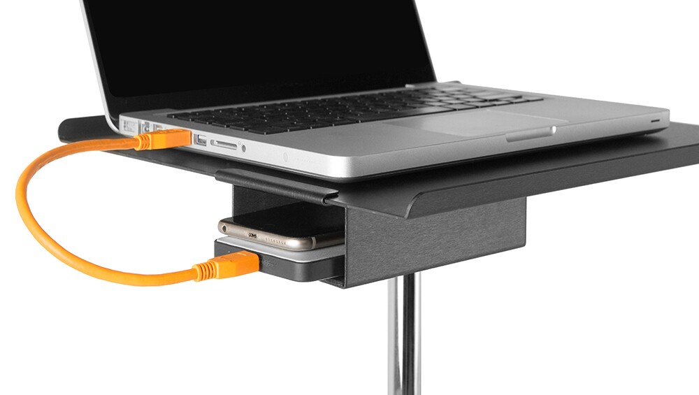 The Aero XDC and XDC Duo are the ideal external drive compartments to use with any Tether Table Aero. The XDC frees up valuable space on the Tether Table due to its low-profile sleeve which mounts under the table’s surface. The compartment’s tunnel design allows for easy connectivity of drives and cables and provides efficient ventilation, keeping your drive cool.