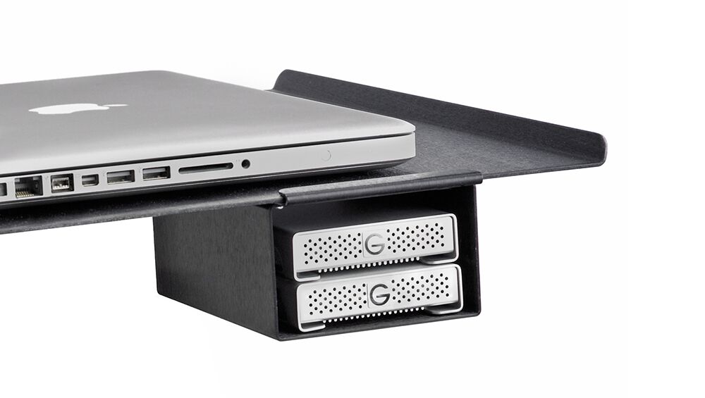 The Aero XDC and XDC Duo are the ideal external drive compartments to use with any Tether Table Aero. The XDC frees up valuable space on the Tether Table due to its low-profile sleeve which mounts under the table’s surface. The compartment’s tunnel design allows for easy connectivity of drives and cables and provides efficient ventilation, keeping your drive cool.
