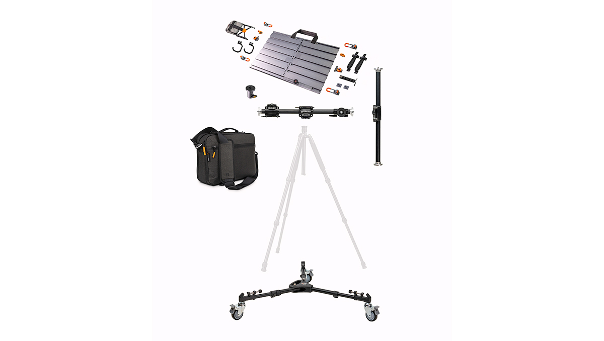 To maximize mobility, the Rock-Solid Tripod Roller anchors your workstation with a rolling base that glides smoothly across studio floors and locks firmly into place. Its all-metal construction and adjustable design make it compatible with most tripods, while the folding frame and padded transport bags keep everything compact and protected for location work.