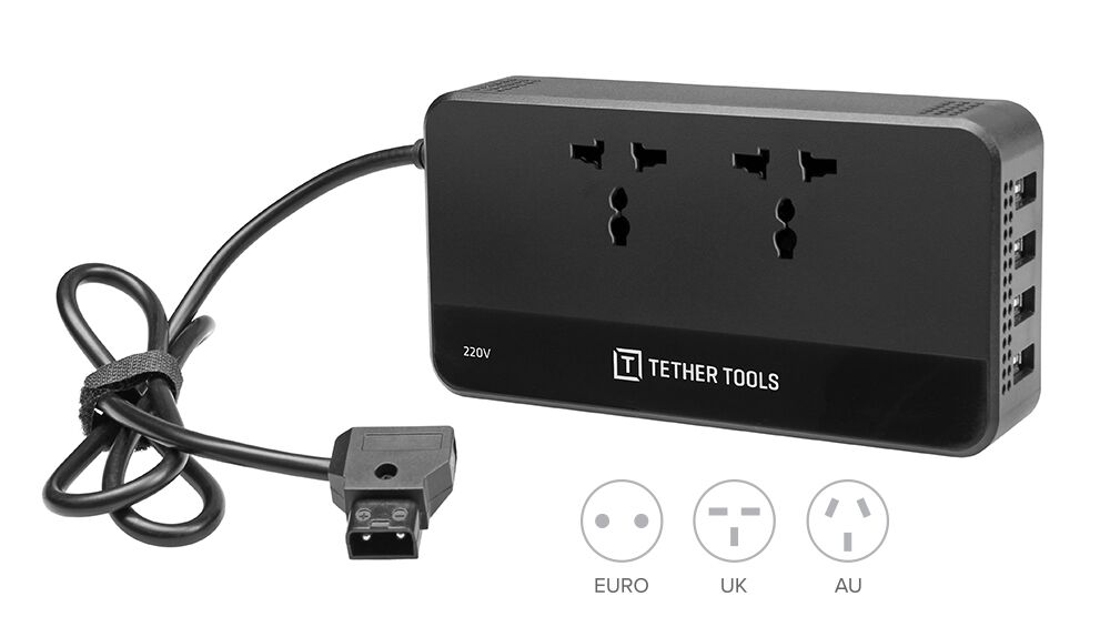 - Two AC outputs and four USB ports powered from any battery with a D-Tap connector including V-Mount and Gold Mount Batteries
