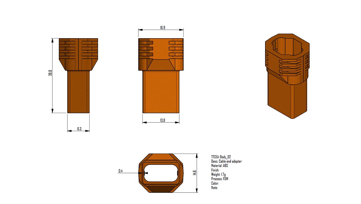 Once the adapter is printed, take your Optima 10G tether cable and locate the end with the camera icon. Slide the adapter over the cable end and push the adapter on until you feel the adapter click into place. When installed properly, the adapter will line up even with the end of the cable.