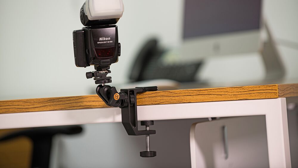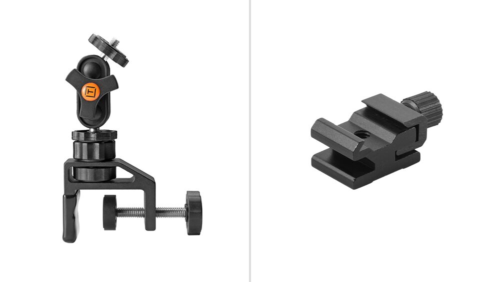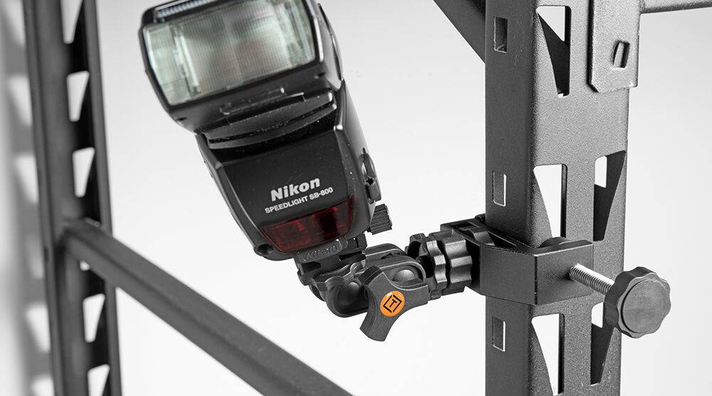 The articulating ballhead assembly includes a RapidMount Cold Shoe for mounting SpeedLight flashes. Additionally the cold shoe can be removed exposing a ¼”-20 thread for versatile mounting of cameras, lights and a variety of other gear. The RapidMount EasyGrip supports weights up to 6lbs(2.7kg). Includes Tether Tools Lifetime Warranty.