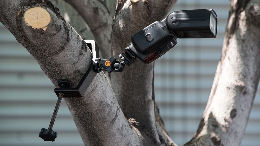The RapidMount EasyGrip Kit from Tether Tools mounts Speed Light Flashes securely to any flat or round surface from 0″ to 4″ (2.5cm to 10cm) such as poles, handlebars, tables, and more. Aluminum construction, the EasyGrip is compact and lightweight, simple to use, and strong.
