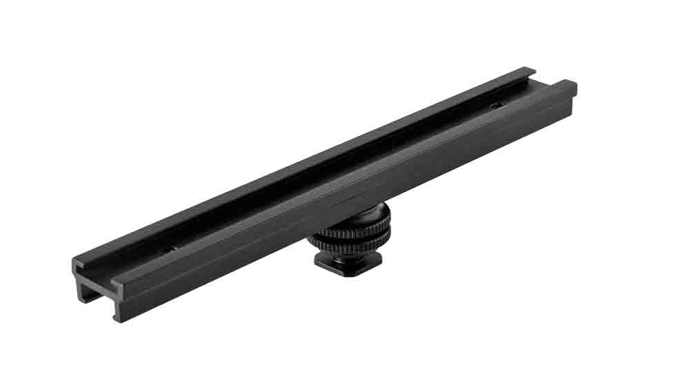 The included removable hot shoe adapter has double locking nuts so the bar can be rotated to any position and secured.