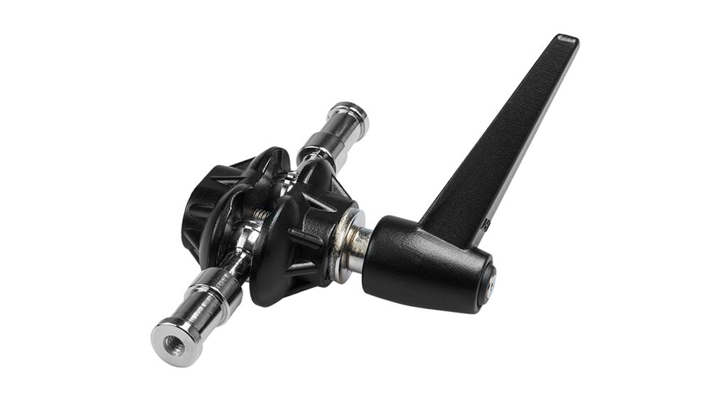 The all metal ball joint has a center ratchet handle that loosens both 5/8” (16mm) Baby studs for complete articulation to position mounted gear in the optimal direction and angle. Once the handle is tightened, all parts lock, positioning your gear in the exact desired location.