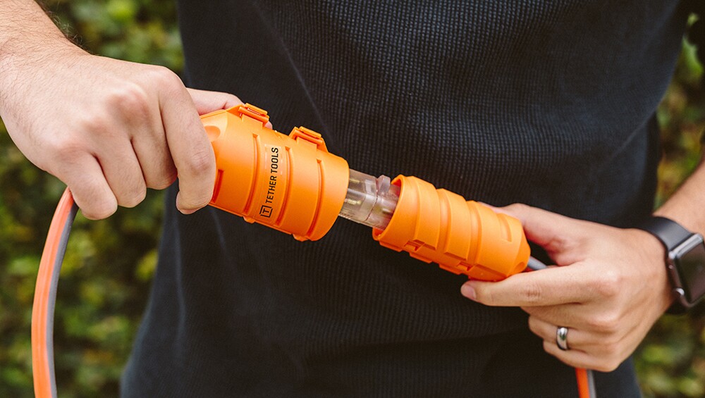 The patented TetherGuard Extension Lock protects the sensitive electronic cable ends and stops unwanted disconnects for USB extension cables, HDMI cables with couplers, and protects power cords for lighting and tools.