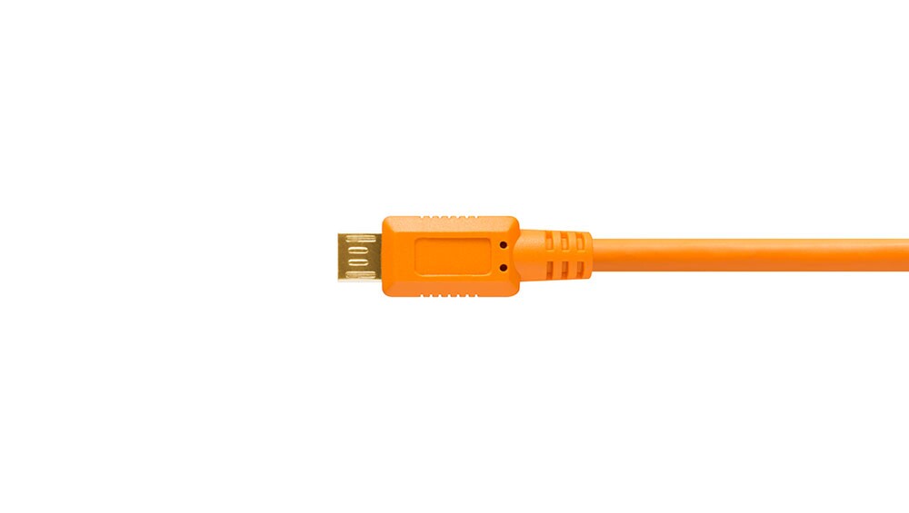 The TetherPro cable connects to a camera using a Micro-B 5-Pin port. This cable is designed and manufactured to the highest USB specifications ensuring delivery of excellent performance in speed and reliability.