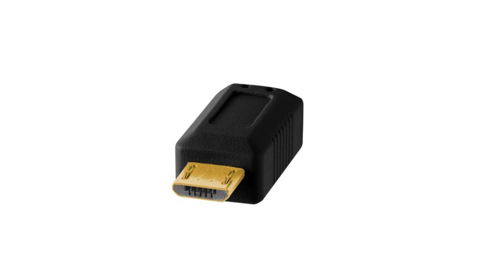 The TetherPro cable connects to a camera using a Micro-B 5-Pin port. This cable is designed and manufactured to the highest USB specifications ensuring delivery of excellent performance in speed and reliability.