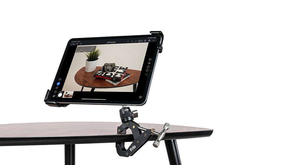 Made to capture flat lay images with ease, the TetherGuard® LeverLock® Plate, AeroTab Tablet Holder, Frio Grasp, Rock Solid 2-Head Cross Bar Side Arm, and Rock Solid Low Boy Roller stand combine for a versatile and easy to use set up in your studio or on location. Add your cable of choice to complete the basic set up.