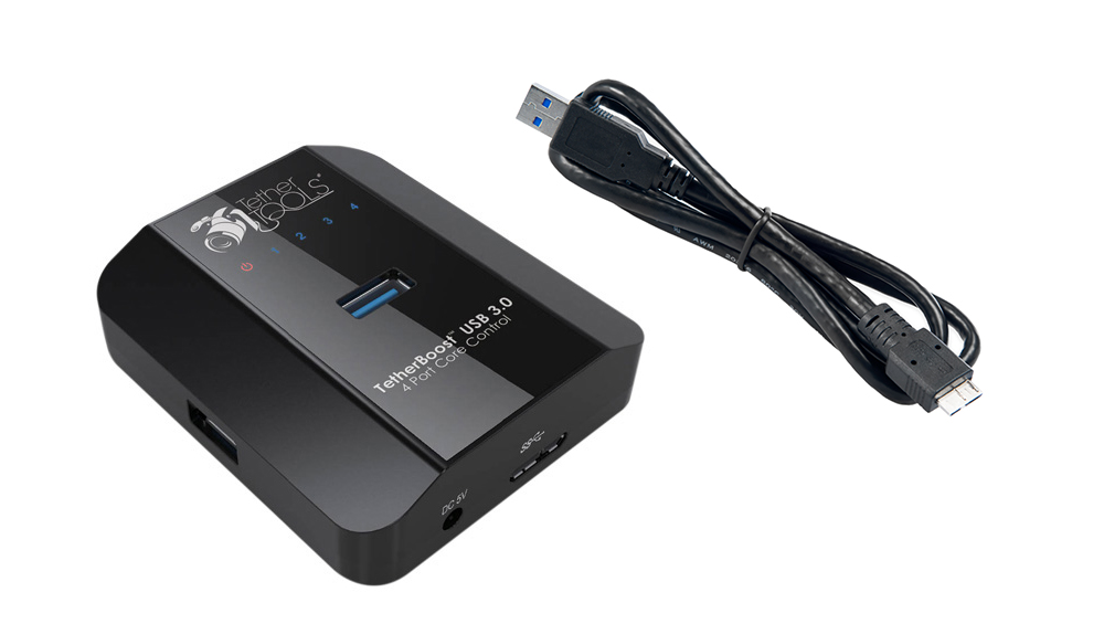 The TetherBoost™ USB 3.0 Core Controller is designed to boost and regulate power from a DSLR camera and/or Digital Back. TetherBoost™ provides enough consistent power to maintain a stable, reliable connection when a camera is connected to a computer via USB cables.